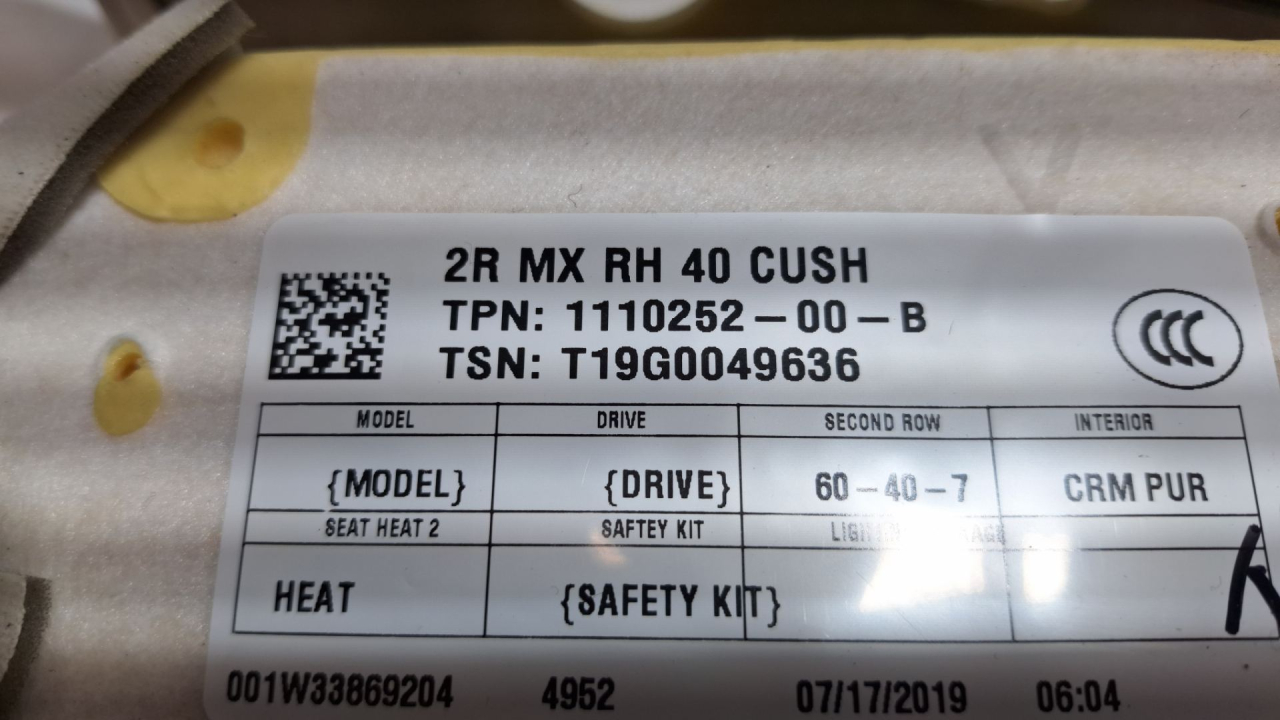 Обшивка с наполнителем сиденья второго ряда, одиночное (семи местный салон), взорвана подушка, Tesla Model X