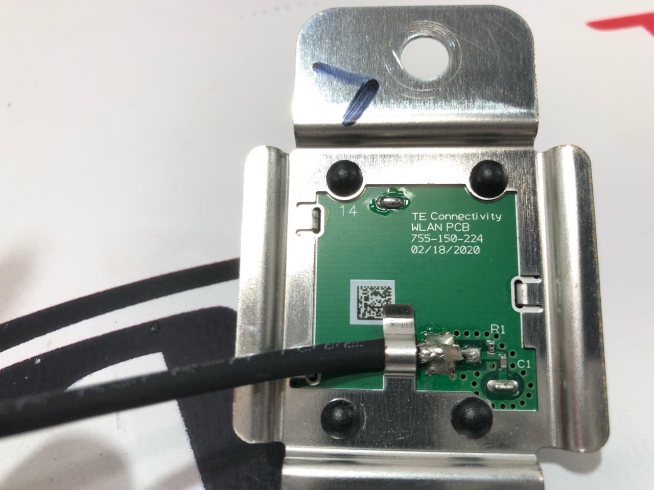 Антенна (TE connectivity WLAN PCB), находится на крыше в районе солнцезащитного козырька водителя, RIVIAN R1T