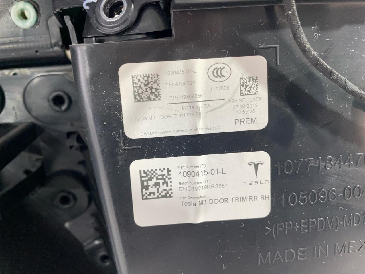 Обшивка двери задней правой Tesla Model 3 2019