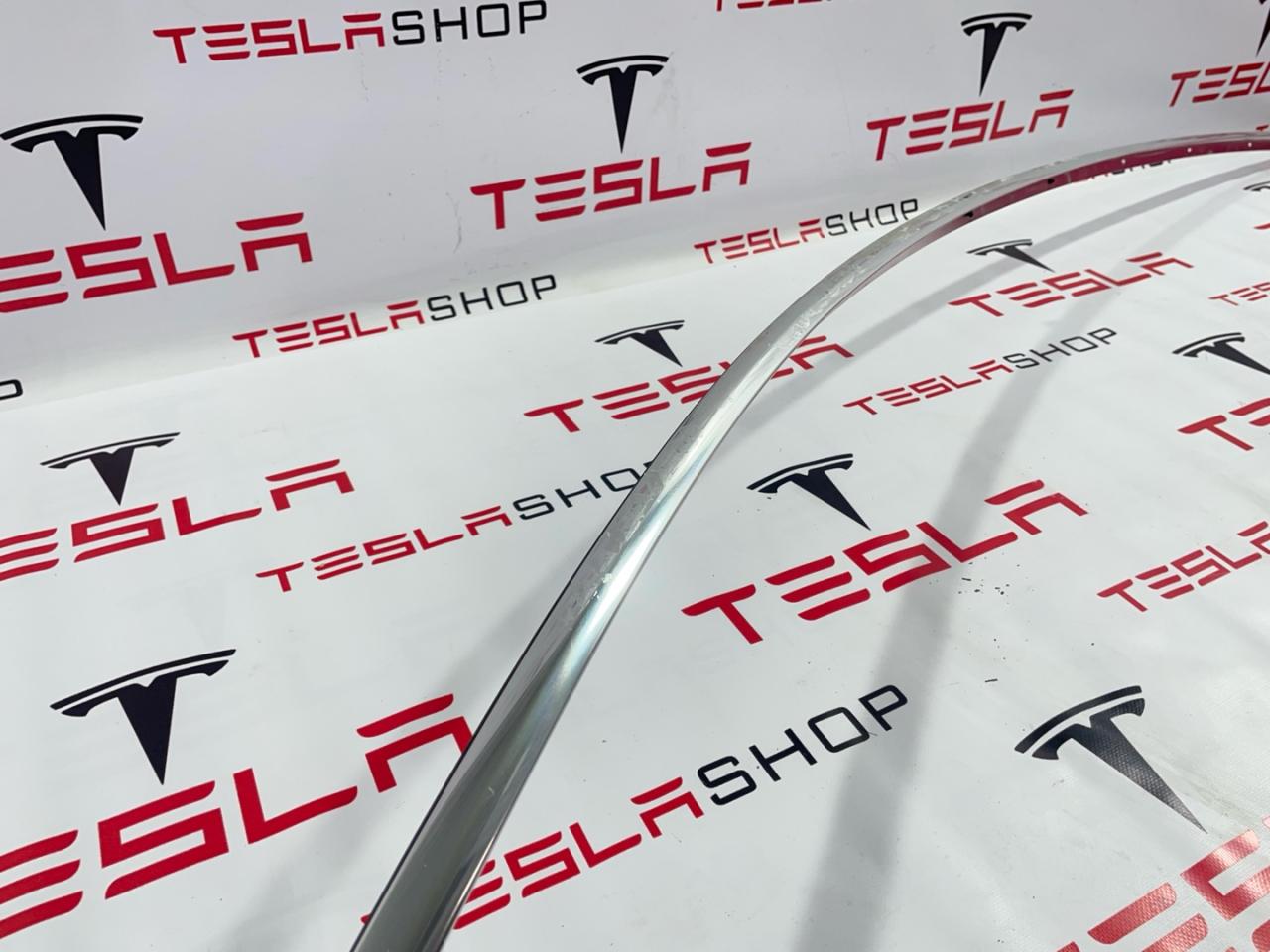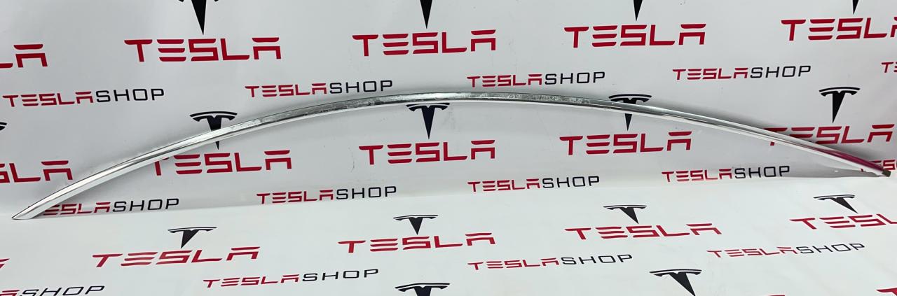 Молдинг кузова боковой левый, хром, мелкие царапины, присутствуют остатки скотча, Tesla Model 3